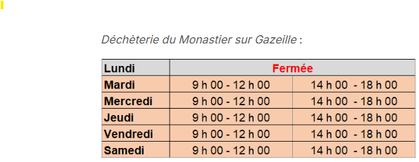 Les horaires de la déchéterie du Monastier sur Gazeille sont accessibles depuis la rubrique Vie Pratique de ce site ou directement en cliquant sur :